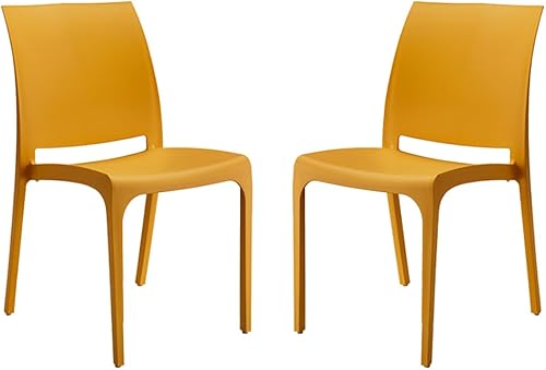 LIBEROSHOPPING.eu - LA TUA CASA IN UN CLIK Chaise empilable en polypropylène Moderne pour intérieur et extérieur Jardin Bar Cuisine modèle Volga (Moutarde 2 chaises)