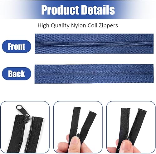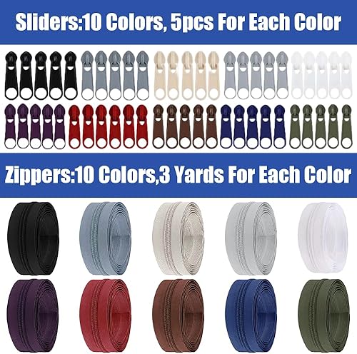30M Nylon Fermeture Eclair au Mètre avec Zip, #5 Fermetures à Glissière Sans Fin avec 50 Curseurs 100 Embout, pour Bricolage, Couture, Artisanat, Vêtements, Textiles D'intérieur(10 Rouleaux, Foncés)