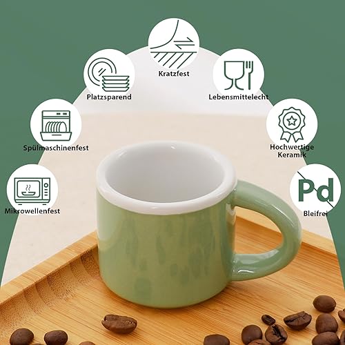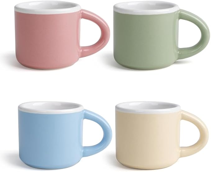 Autumnlife Lot de 4 mini tasses à expresso de 43 ml - À paroi épaisse - Avec anse pour café moka, thé et lait - Parfait pour la maison et le bureau - En porcelaine - Multicolore