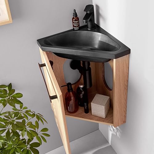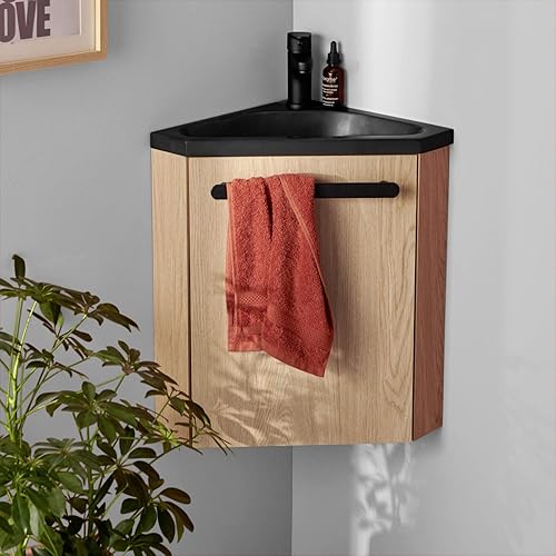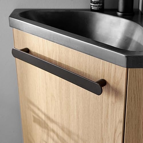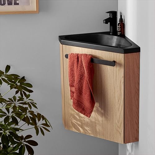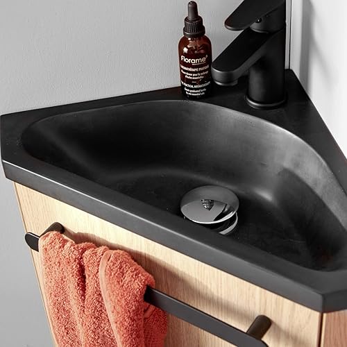 Meuble Lave-Mains SKINO Décor chêne Vasque Noire
