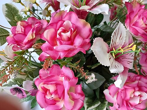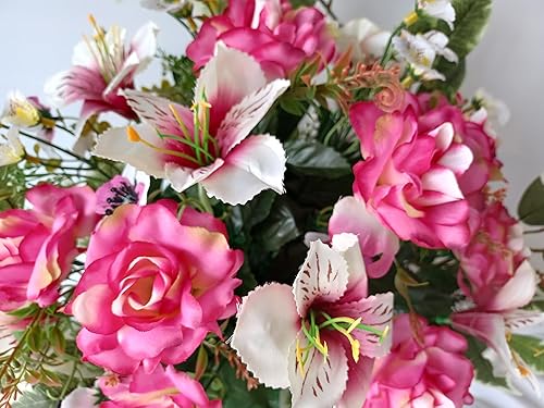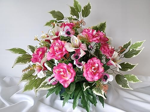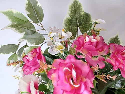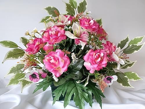 Roselynexpress Composition De Fleurs Artificielles, Lesté Ciment pour Une Parfaite Tenue à L' extérieur. Réalisé par Nos Soins, Fleurs de Qualité. Dimension - Largeur/32cm - Longueur/72cm