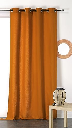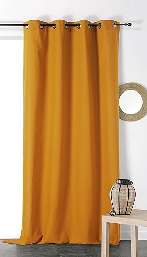 Linder Rideau Métis en matières Naturelles (Coton/Lin) Coloris Jaune Safran œillets 135 x 260 cm