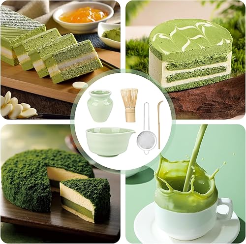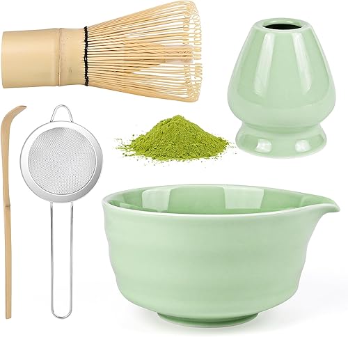 5 Pièces Matcha Kit, Ensemble à Matcha, Kit à Matcha, Avec Cuillere Matcha, Bol Matcha Bec Verseur, Fouet a Matcha, Support de Fouet à Matcha, Tamis à Matcha, pour La Cérémonie Du Thé Matcha