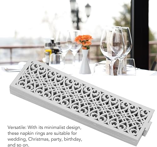 50PCS Ronds de Serviette, Boucle de Serviette Évidée, Anneau de Serviette en Papier Exquis, Porte-Serviettes, Boucle de Porte-Serviette Minimaliste pour Fête de Mariage Anniversaire Noël(Argent)
