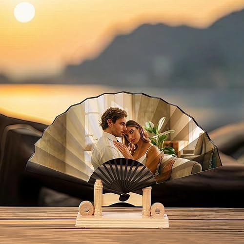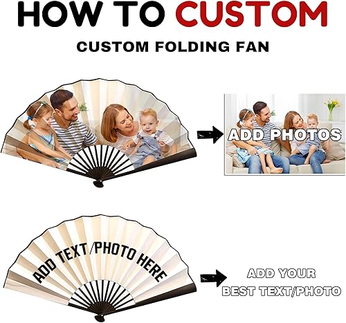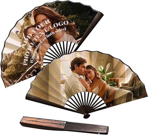Générique Eventails Personnalisés Avec Texte Photo Éventail Pliant Décoratif à Main Avec Photos Personnalisables pour Spectacles, FêTes, Mariages, Décorations, Cadeaux d'anniversaire (Bambù)