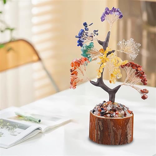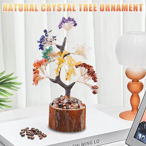 Pierres chakras en cristal - Arbre à argent - Décoration de bureau - Décoration de bureau - Bonsaï - Arbre de vie - Feng Shui - Décoration - Cadeau spirituel pour femme