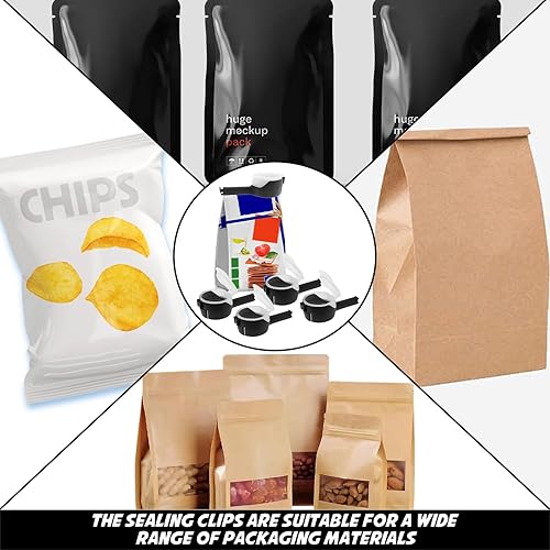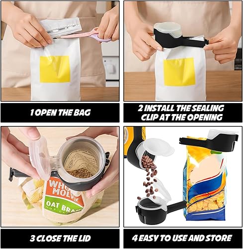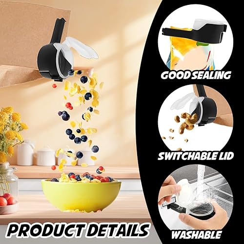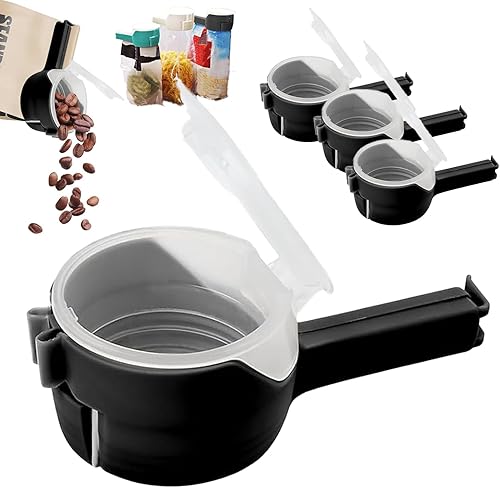 YISKY Clips avec Bec Verseur, 4 Pièces pinces à sacs avec bec verseur, Lot de Clips Fermeture avec Verseur, Alimentaire Clip d'Étanchéité, Pour Sacs Collations Alimentaires Noix (noir)