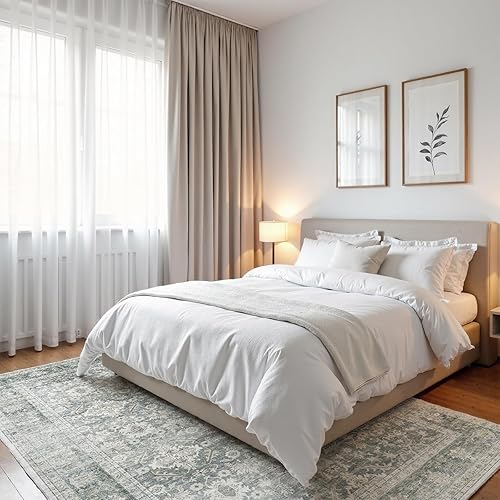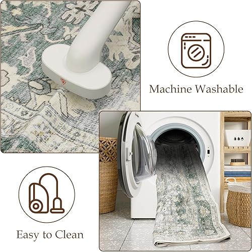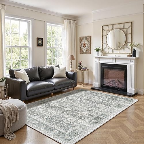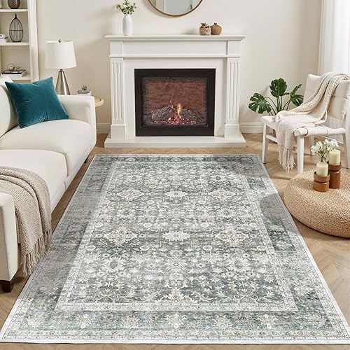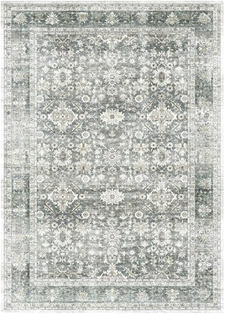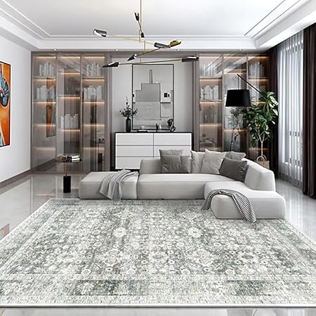 YULEYU Grand tapis vintage, bohème, lavable, antidérapant, pour salon, chambre à coucher, gris, 240 x 300 cm