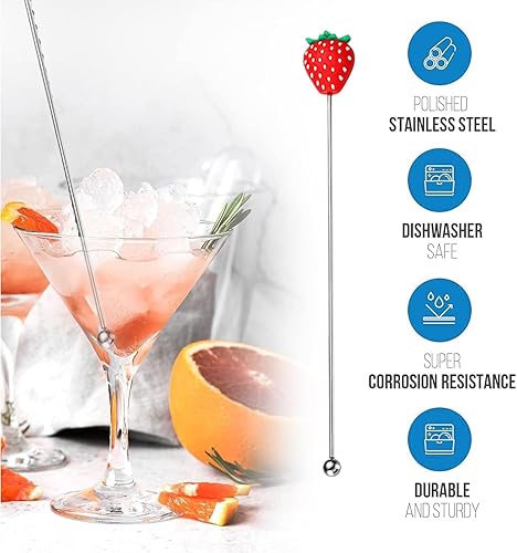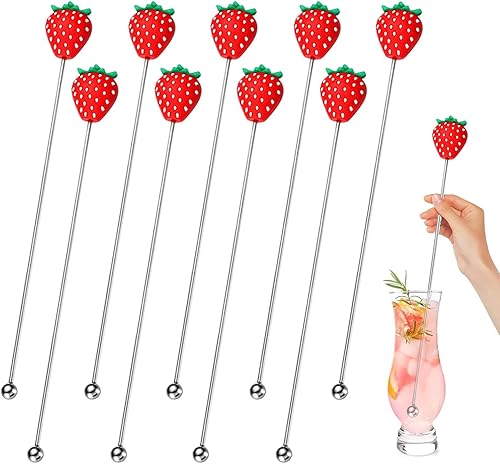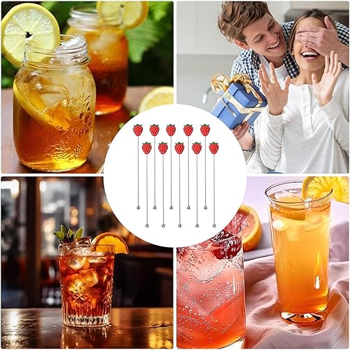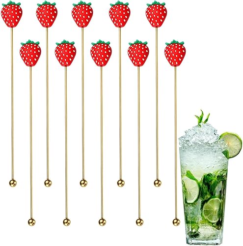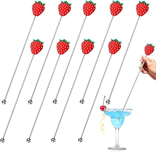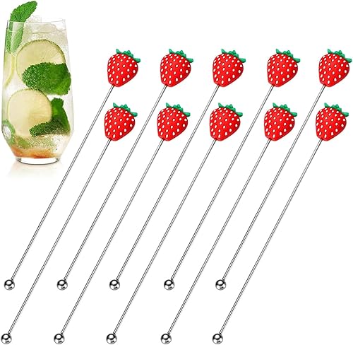 Bâtonnets pour cocktails, agitateurs de boissons,10 pièces mélangeurs de fraises pour cocktails | Bâtonnets de mélange de boissons au café en acier inoxydable, agitateurs de café en métal réutilisable