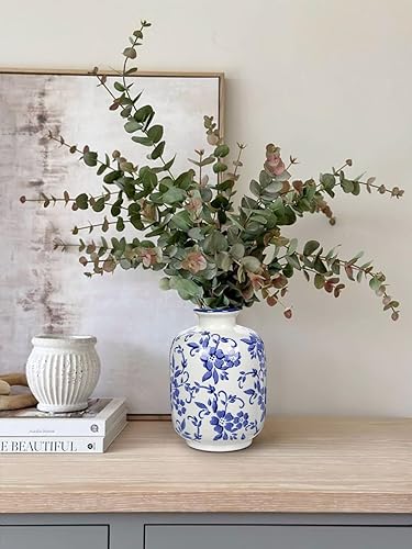 Arborus Vase en porcelaine bleu et blanc, 18,5 cm, en céramique, style rustique, bleu gris, pour fleurs, herbe de la pampa, roses, hortensia, lavande, style maison de campagne, scandinave, décoration
