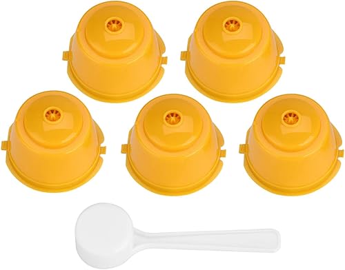 Nescafé Capsules 5 Pièces de qualité Alimentaire PP 304 en Acier Inoxydable Réutilisable Filtre à Capsules de café Rechargeable (Jaune)
