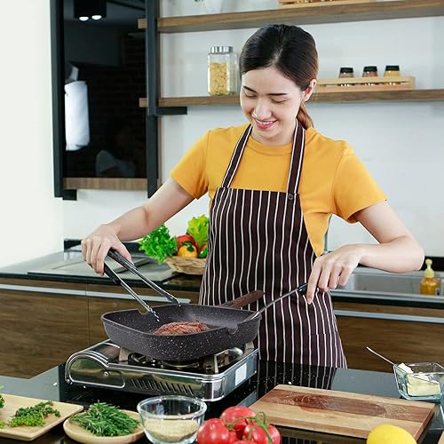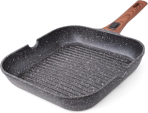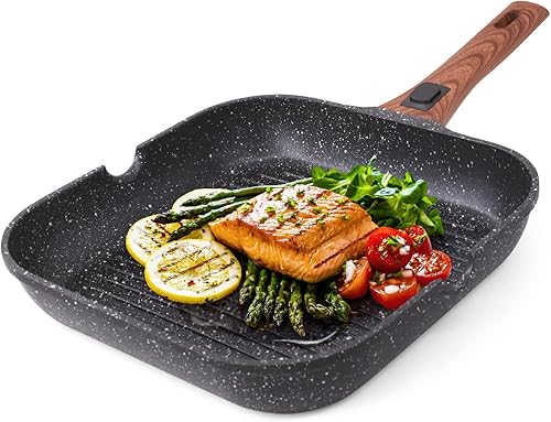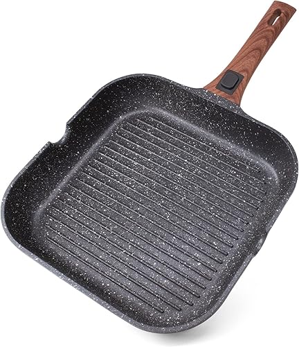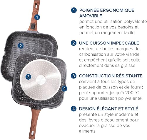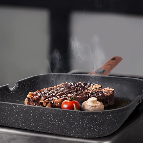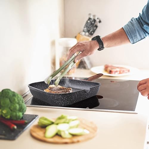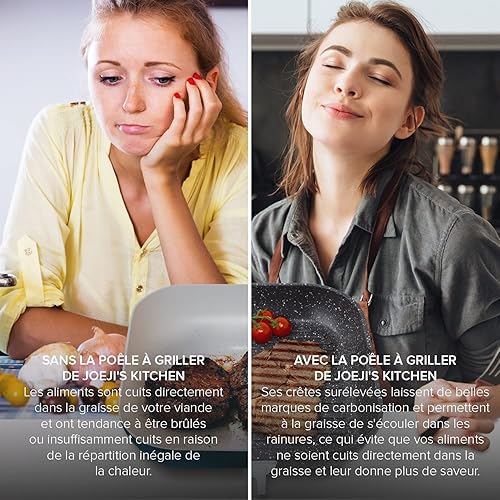 joeji's Kitchen Poele Grill Induction Antiadhesive 28 cm - Poignée Amovible - Cuisson de la Cuisinière Au four - Poêle Grill pour des plats faibles en gras avec de superbes Marques de Cuisson