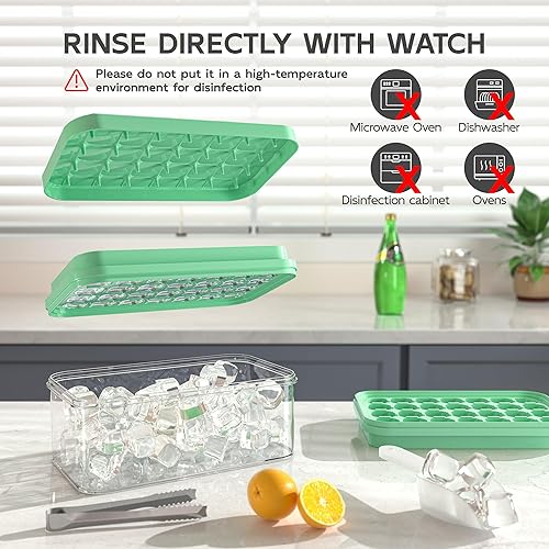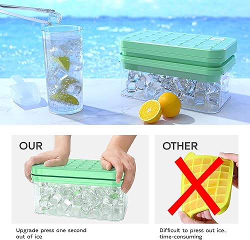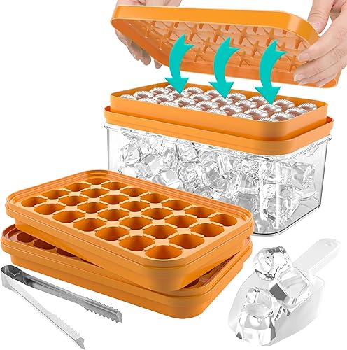 Bacs à Glaçons Moule à Glaçons en Silicone avec Couvercle Boîte de Glace et Pelle, Empilables Bacs à Glaçons, Démoulage Facile, 56 moules glaçons pour Cocktail Whisky Boissons (Orange)