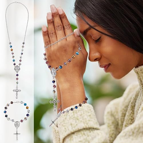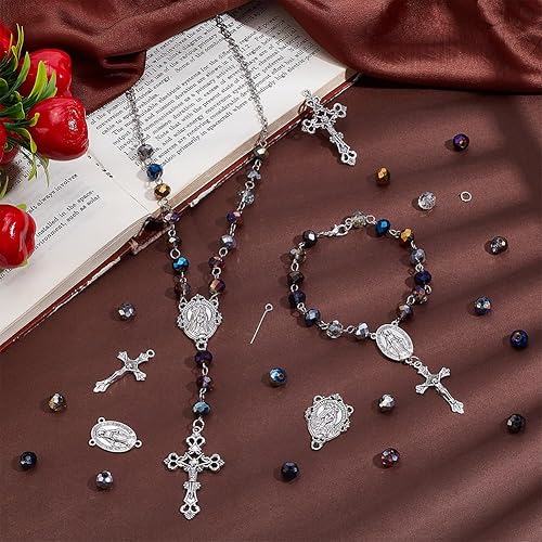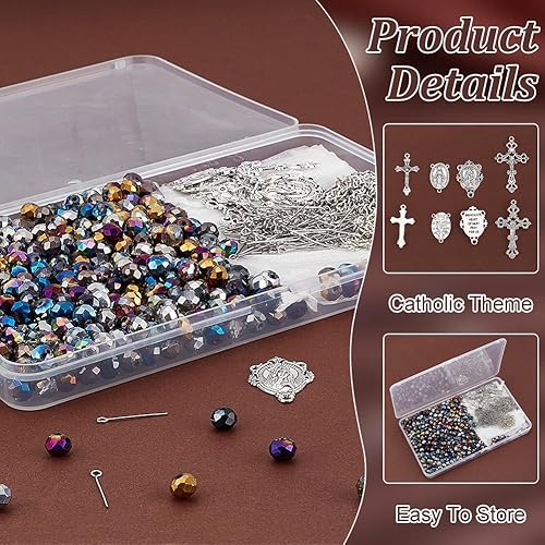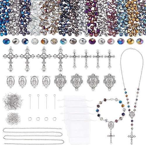 PH PandaHall 737pcs Kit de Fabrication de Bijoux de Chapelet Fournitures de Fabrication de Prière Perles de Verre en Cristal Breloques en Croix pour Bijoux Bracelet Boucle D'Oreille Ramadan de Pâques