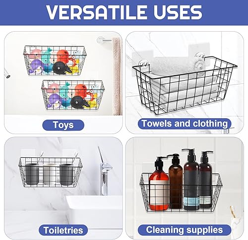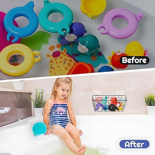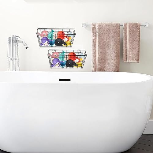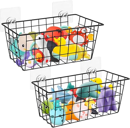 YEXEXINM Lot de 2 organiseurs de rangement en métal pour jouets de bain, paniers de douche en maille à suspendre avec crochets adhésifs pour baignoire, grand support de jouets de bain pour ranger les