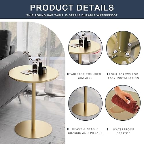Yopappol Table de Bar Ronde dorée, Table de Bistro, de pub pour Les fêtes, Tables de Salle à Manger de Cuisine, Table de Chevet pour Salon, Chambre à Coucher, Bureau ou terrasse (Size : 60x60x104cm)