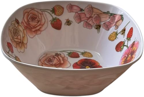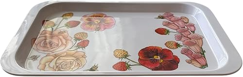 Plateau décoratif en mélamine avec motif floral, roses et fraises, design printanier, plateau de collation, plateau de cuisine (2 x 30 cm)