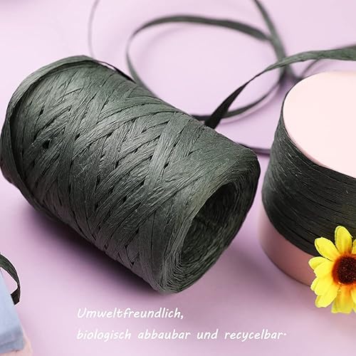 KAMAIKA - Fil de papier raphia vert foncé - 100 m - Ruban en papier naturel pour emballage cadeau, projets d'artisanat, décoration, tissage et jardinage.