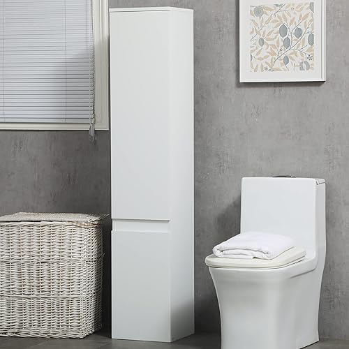 kleankin Meuble Colonne Rangement Salle de Bain 2 placards 3 étagères réglables Style Contemporain 30 x 28 x 152,5 cm Blanc