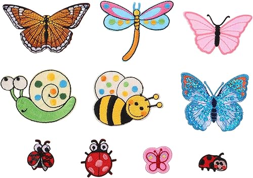 Uonlytech 10Pièces Broderie Décoratifs Thermocollants pour Vêtements Appliques DIY Animaux Insectes Accessoires de Couture Colorés pour Personnaliser Vos