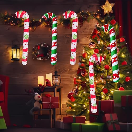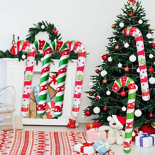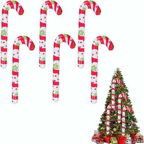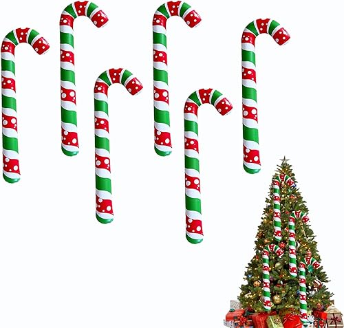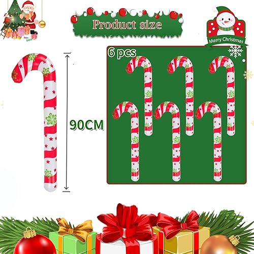 Lot de 6 grands ballons gonflables en forme de canne à sucre d'orge de Noël de 90 cm pour intérieur et extérieur (rouge et blanc)