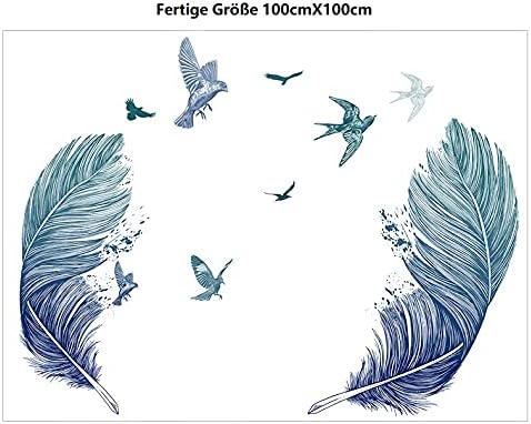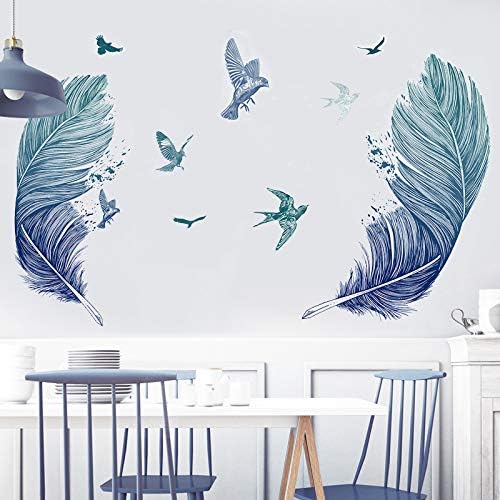 Covpaw® - Sticker mural XXL - Autocollant plume - Bleu - Pour décoration de salon et chambre à coucher