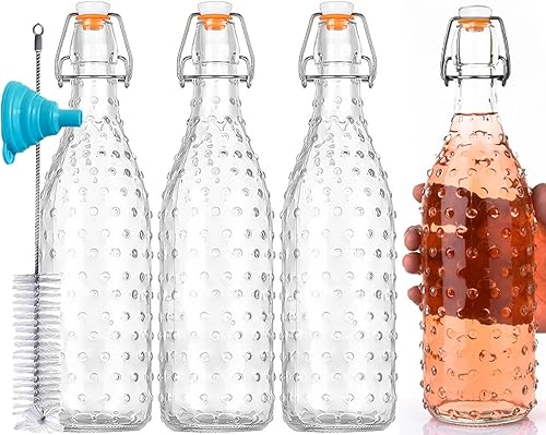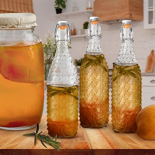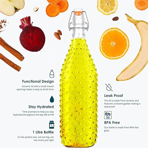 AXIM Bouteilles en verre avec bouchon basculant - 1 litre - Pour brassage, kombucha, boissons, bière, vinaigre, soda, smoothies, kéfir, jus