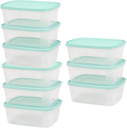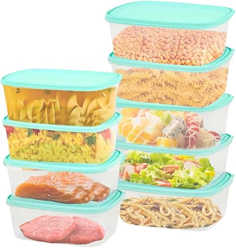 Checkmart Lot de 9 boîtes de rangement empilables et hermétiques pour réfrigérateur/congélateur avec couvercle,Boîtes à déjeuner empilables, 4x1L, 3x2 L, 2x3 L