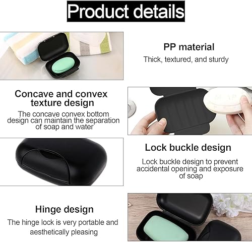 Hsyadazi Lot de 2 boîtes à savon de voyage étanches en plastique pour la maison ou les voyages (blanc et noir)