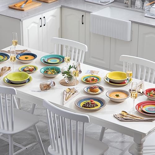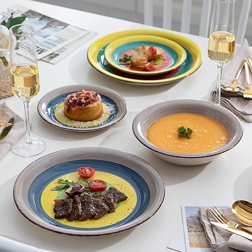 vancasso, Série ARCO, Service de Table en Céramique, Vaisselle Complet 36 Pièces pour 12 Personnes, Assiette Plate et Creuse, Style Multicoloré Tropical