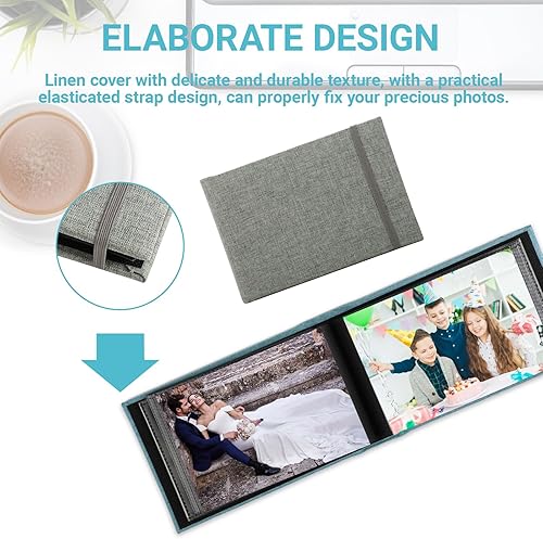 2 Pièces Album Photo 10x15 - Album Photo, Capacité pour 200 Photos, Couverture en Toile avec Lanière, Idéal pour Voyages, Mariages et Anniversaires