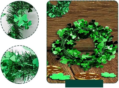 1 guirlande de trèfle à quatre feuilles - 7 m - Vert - Décoration à suspendre - Guirlande pour décoration de table murale - Festival irlandais - Pour la maison, un mariage, une fête, un carnaval