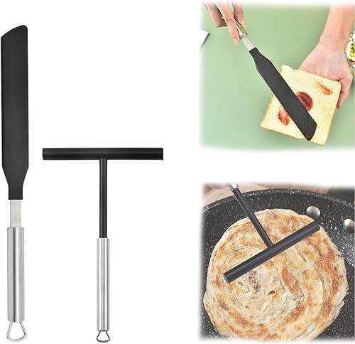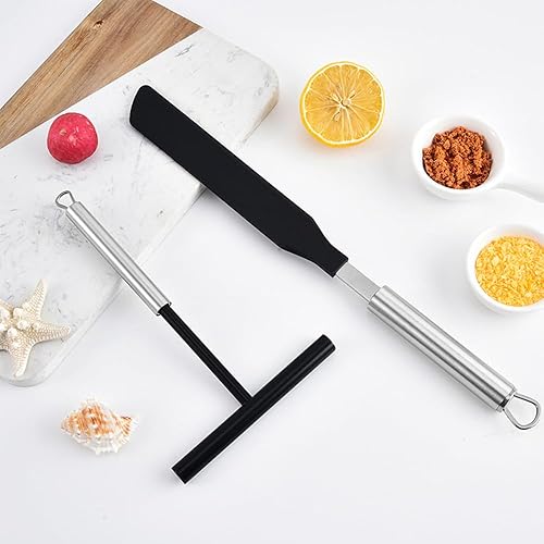 ysister Distributeur de pâte en acier inoxydable et spatule 2 pièce Spatule de Cuisine pour Crêpes Spatule à crêpes en silicone pour la maison, la cuisine, la pâtisserie, la pâtisserie