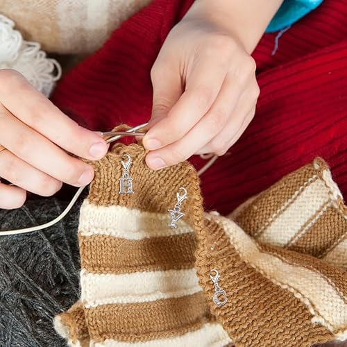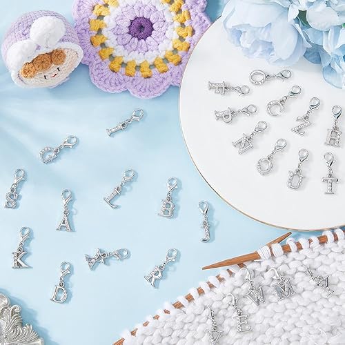 SUNNYCLUE 1 boîte de 26 marqueurs de Mailles Alphabet Breloques de Crochet Fermoir Mousqueton Alliage Lettres de A à Z Strass Nom Breloques de Tricot pour la Fabrication de Bijoux L'Artisanat le Tissa
