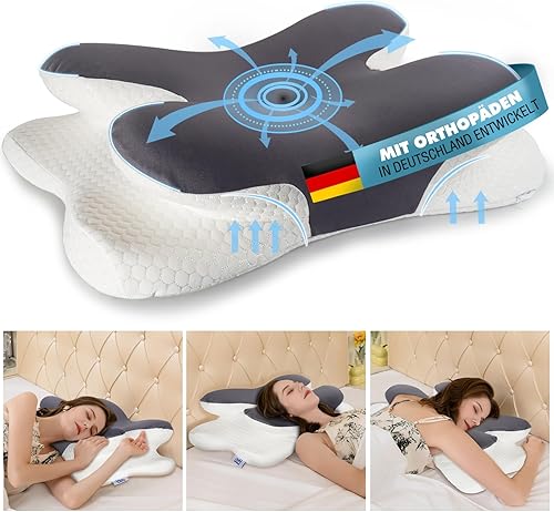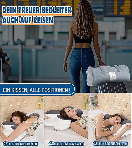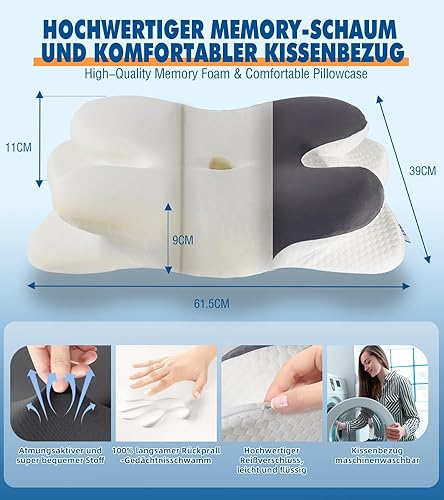 IDEA Oreiller cervical ergonomique en mousse à mémoire de forme - Oreiller orthopédique - Vainqueur du test de douleur cervicale - Oreiller de voyage - Coussin de voyage - Coussin cervical pour adulte