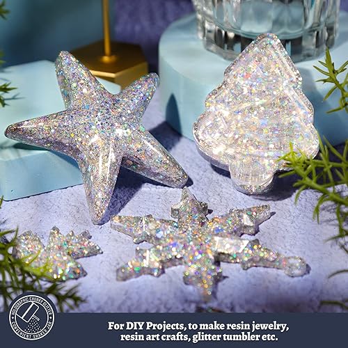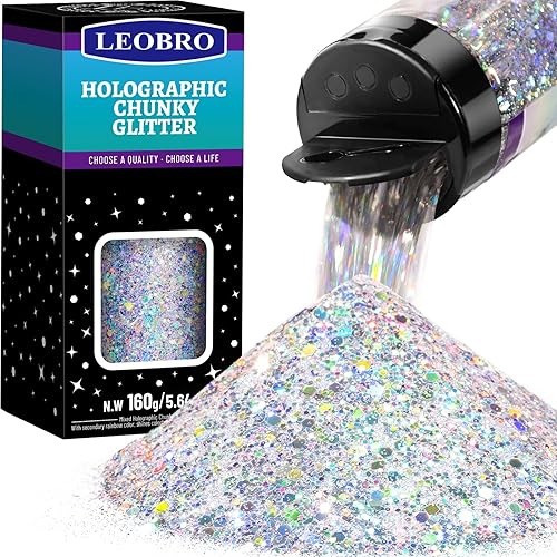 LEOBRO Glitter, Holographic Chunky Glitter, 160G/5.64OZ Silver Glitter, Craft Glitter for Resin, Metallic Iridescent Silver Chunky Glitter Sequins Flakes, Makeup Face Body Glitter, Christmas Glitter