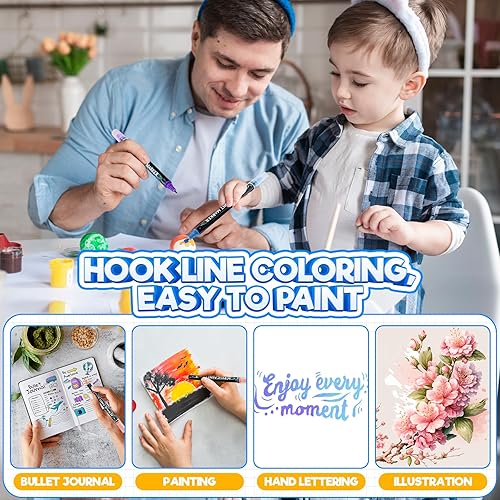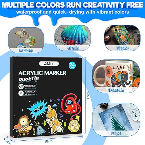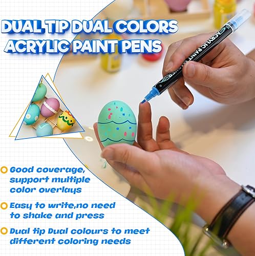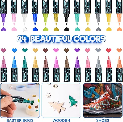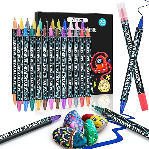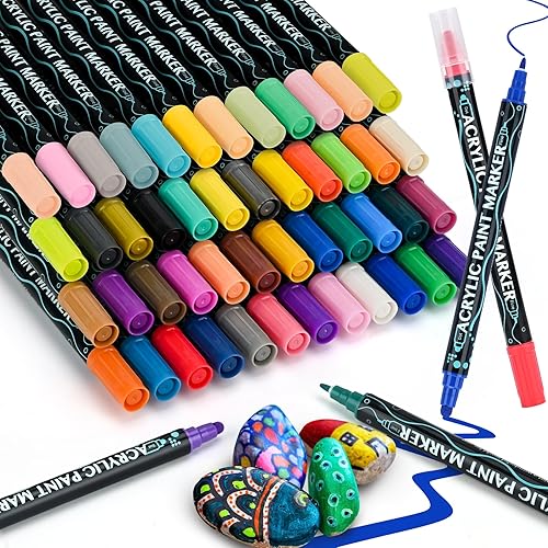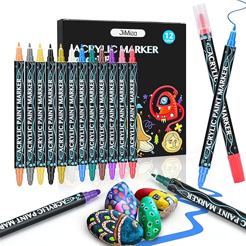 Sofore Feutre Acrylique, 12 Couleurs Pinceau Double Pointe Peinture Permanent Marqueur Acrylique Pour Peinture Rupestre Pierre, Bois, Verre, Plastique,Toile, Feutres Galets(Pointe Souple de 1 à 5 mm)