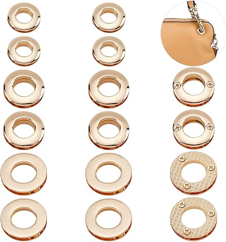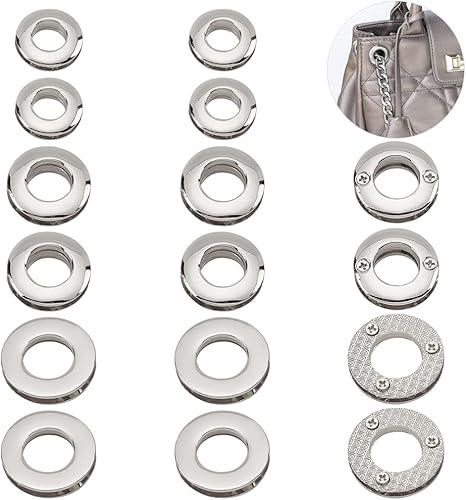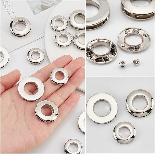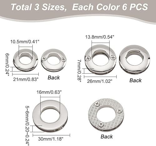 WADORN 18 pièces Œillets en Métal, 10.5/13.8/16 mm Oeillets Ronds à Visser Œillets Boucle pour Sac Poignée Connecteur Vêtements Rideau Maroquinerie, Platine