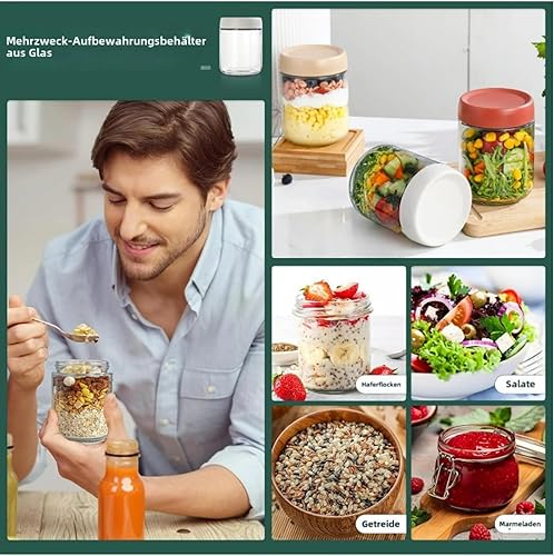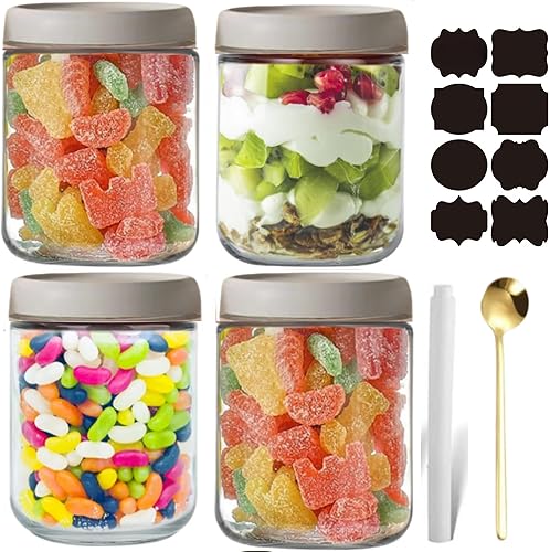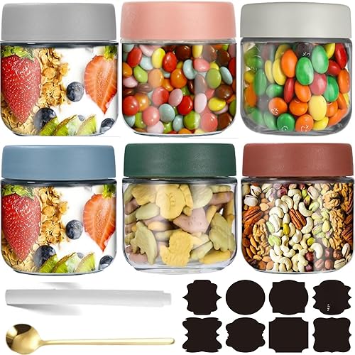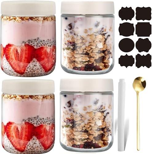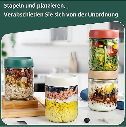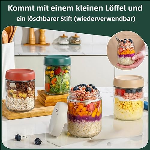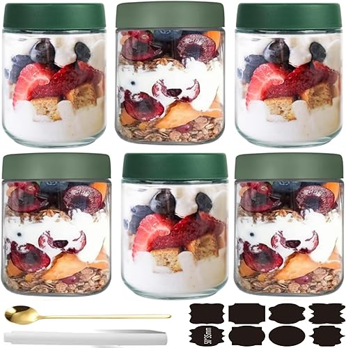 CNKHDZ 6 Crème pièce 500MLOvernight oatspot de yaourt en verre avec couvercle,pot yaourt en verre avec couvercle,Épices Bocaux en Verre Réutilisables avec Couvercles à Vis D'étanchéité