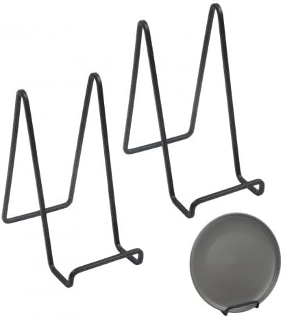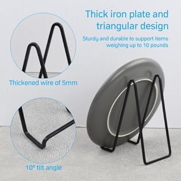 Rapidbok 2 Pièces Metal Support Assiette Decorative, Support Cadre Photo de Table, Assiette Présentoirs, Porte Assiette Chevalet, Supports de Cadre Noir pour Art de table, Livre, Tableaux (6 Pouces)