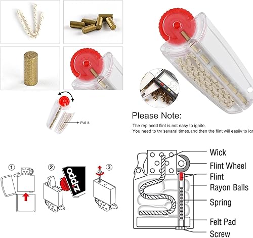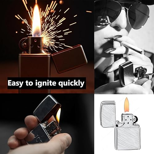 AMSNINK Lot de 10 pierres à feu et 10 mèches pour Zippo & Clipper, 31 accessoires de briquet à essence avec tampons, feutre et pince à épiler – Kit d'entretien complet pour briquet