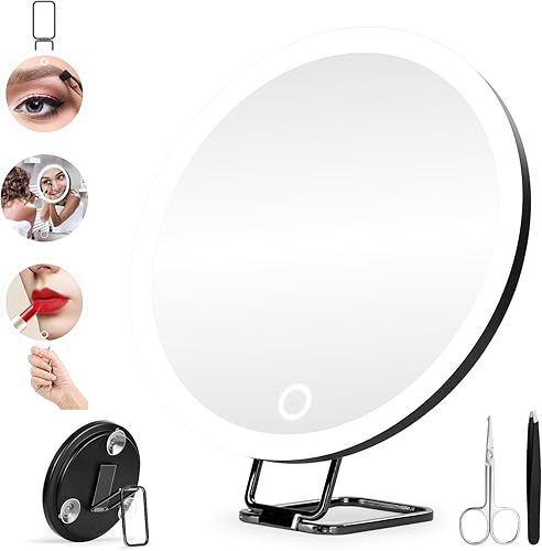 Hmggoofa Miroir grossissant x30 avec lumières, miroir de maquillage grossissant de 15,2 cm, grossissement x30, avec 3 ventouses et support réglable à 360° – Comprend une pince à épiler et des ciseaux