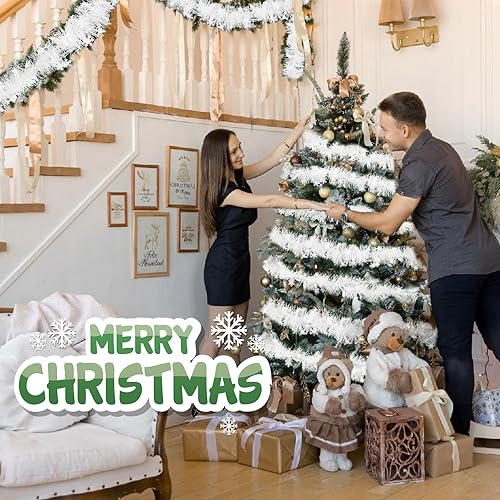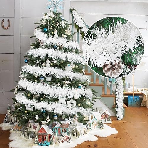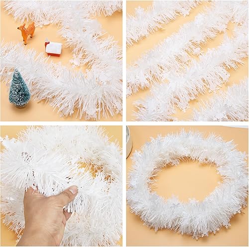 Bluelves Guirlande Flocons de Neige de Noel Sapin, 5pcs Guirlandes Tinsel Noël, Guirlande Neige Sapin 2m, Guirlande Tinsel Métallique Scintillantes pour Fête Murs Fenêtres Decoration Noël - Blanche