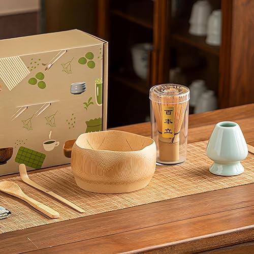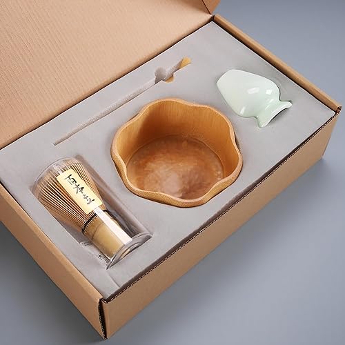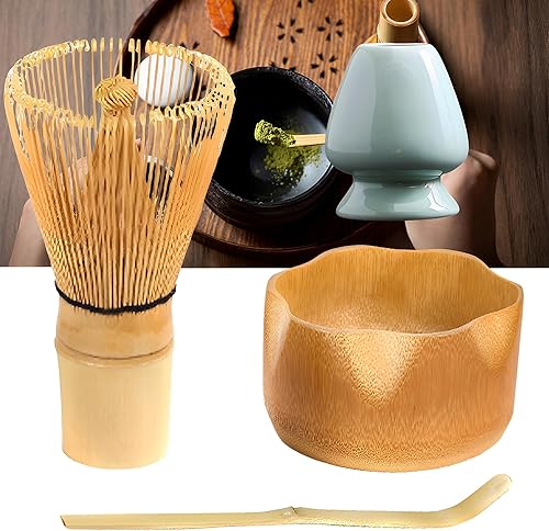 WYFCR 4PCS ensemble de Matcha, ensemble de et de bol Matcha, cuillère à tartiner, porte -, bol en bois 510 ML, kit de préparation de thé matcha à la main