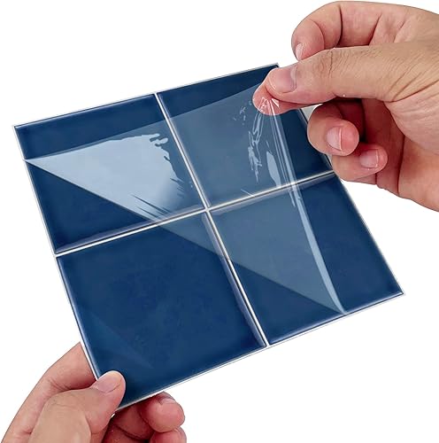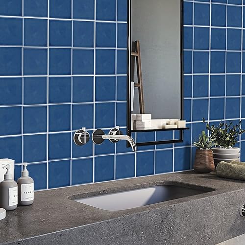 Alwayspon Lot de 10 autocollants muraux de transfert en vinyle épais, imperméables - Pour cuisine et salle de bain - Effet mosaïque, Bleu, 15 x15 cm