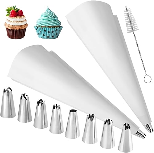 Set De 11 Poche A Douille Patisserie Professionnelle, Poche A Douille Reutilisable avec Embouts En Acier Inoxydable, Poche Douille Patisserie, Poche Patisserie pour Cupcakes, Biscuits Cupcake