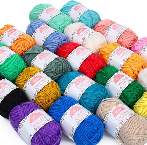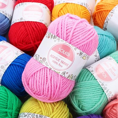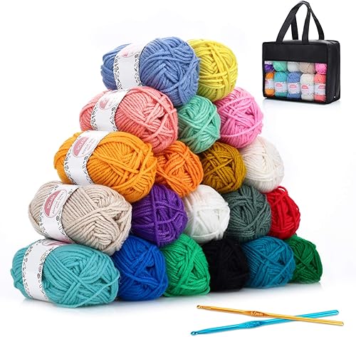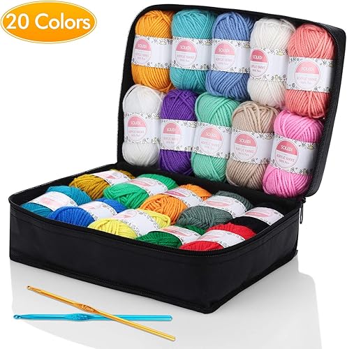 SOLEDI 500g Pelote de Laine - Laine à tricoter en Acrylique Ultra Doux pour Crochet de Fil à Tricoter - Laine Avec 2 Crochets et Sac de Rangement Réutilisable(25g * 20 couleurs)