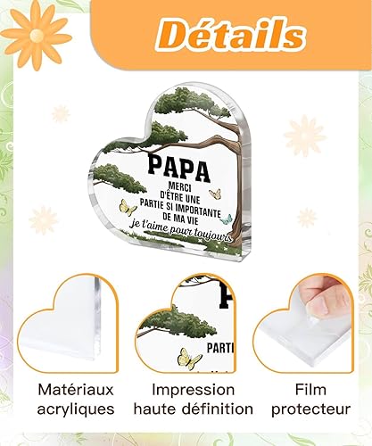 Putuo Decor - Panneau Acrylique Cœur Papa Merci d’Être Une Partie de Ma Vie – Cadeau Décoratif Fête des Pères ou Anniversaire