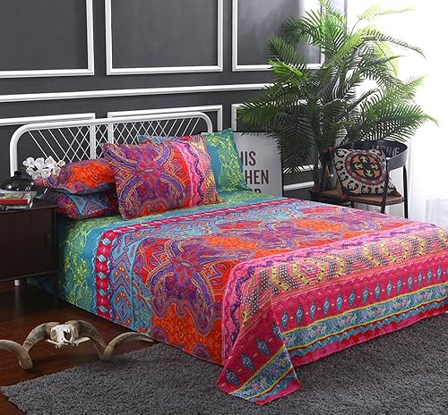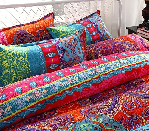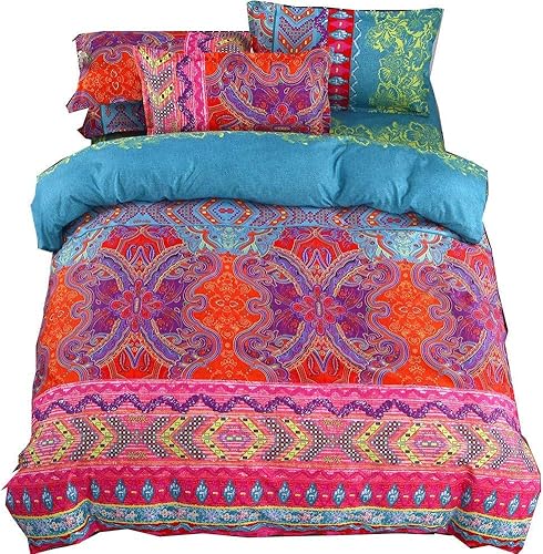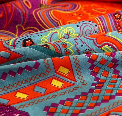 Andrui Parure de Lit de 4 Pièces - avec Drap Lit Couvre de Lit 2 Taies d'Oreillers et Housse de Couette 220x240cm Multicolore Style Bohème (Orange & Brown)