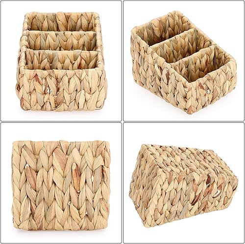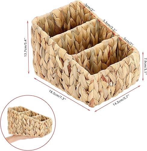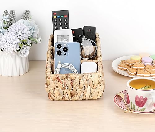 BSTKEY Support de rangement pour télécommande en jacinthe d'eau naturelle, tissé à 3 emplacements pour médias, TV, télécommande, crayon, papeterie, organisateur pour table et salon